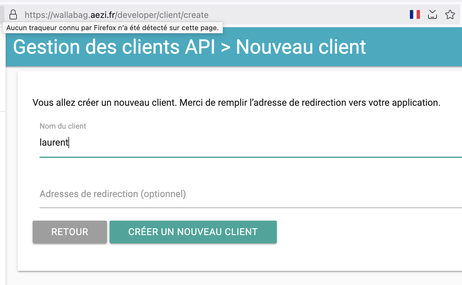 Pour connecter Frigoligo ou l'extension Firefox, il faut un Client ID et un Secret ID.