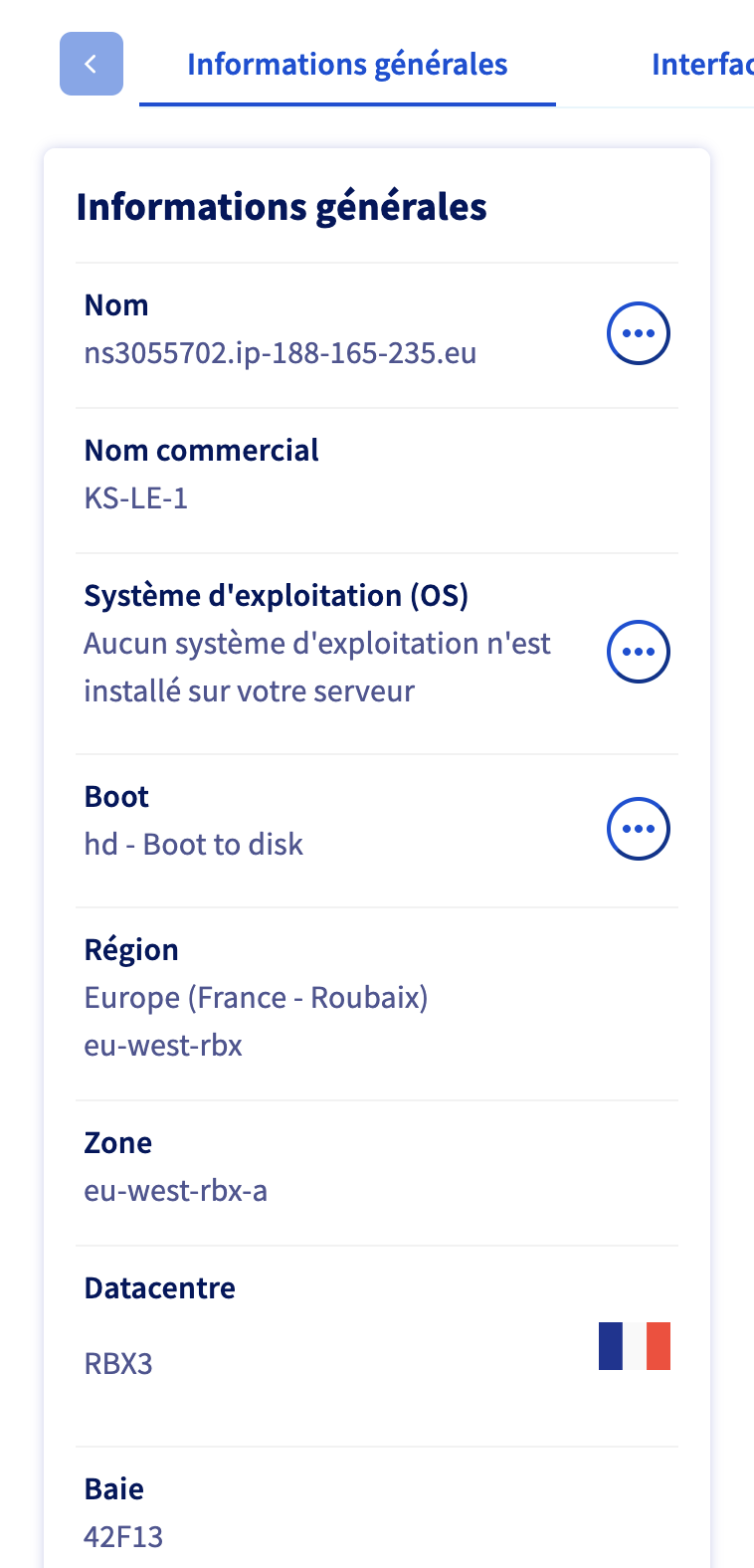 Se connecter sur l'interface OVH et aller sur l'interface de gestion du serveur